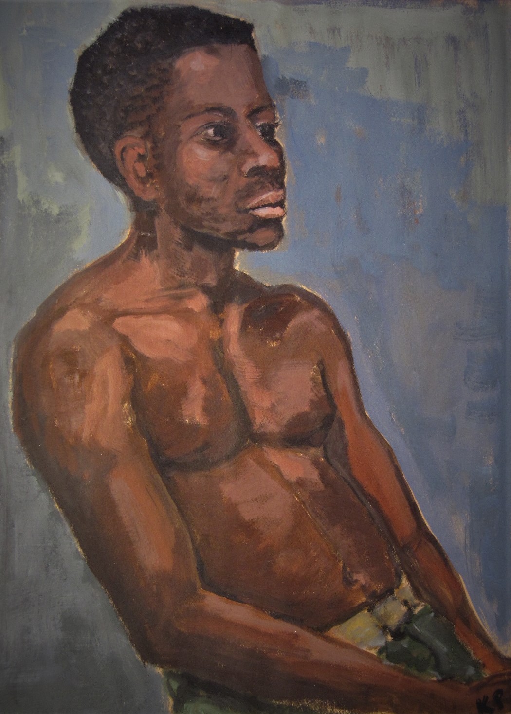 1996, Tummaihoinen poika, munatempera+maavärit